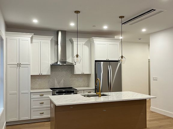 Unit available now! Located on a quiet street in Roxbury, this 2 bed/2 Bath unit has luxury finishes throughout with 9' ceilings, plenty of natural light, garage parking, and everything you're else looking for! Enter into an open floor plan living/kitchen area with a private balcony, two tone cabinetry with a large island, quartz countertops and marble backsplash. Continue down the hallway to the second bedroom, common bath, and spacious primary suite. Every bedroom has large closets for additional storage. Photos are of a similar unit in the building.