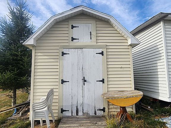 Included with the mobile home, there is a newer 10x 12' shed that is wired with power and water. it houses the full sized washer and dryer as well as provides plenty of storage for outdoor furniture or other things. does have a loft space above for additional storage.