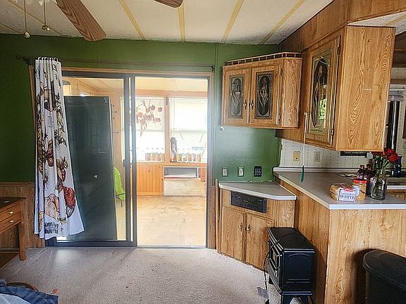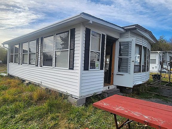 Single Wide mobile home with a full bedroom and bath. Combine living room/ dining room/ kitchen, and a full length sunroom that was partailly divided to create an additional sleep area.