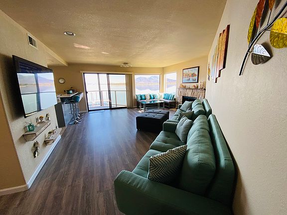 Features: Spacious Floor-Plans Fully and stylishly furnished (all brand-new furniture) Wood and Tile Floors Gourmet Kitchen In-Home Washer & Dryer Smart Home Air Conditioning Large Patio/Balcony Oversized Closets Stainless Steel, Energy Efficient Appliances Community Info: Arrive at our resort-style community and immediately embrace the feeling of coming home. Enjoy our stunning panoramic lakeview, relax by the pool or Hot tub. The condo unit has lakefront access, 1225 SF(including Balcony). 2 Bedroom 2 Full Bath. This lovely open floor plan was designed with the living room, dining room and kitchen combined. This allows seamless access from the covered private balcony. Enjoy year-round tranquility from the lakeview balcony with amazing morning sunrise and a perfect view of fireworks. The kitchen offers ample countertops, lots of storage and a bar counter area that overlooks the lake. Main bedroom offers a 2nd access point to the attached Lakeview balcony. The large closets and in-room bathroom, sink area, linen closet, and separate tub/shower room add to the suite feel on this bedroom. The 2nd bedroom is located next to the hall bath with tub/shower combo. This 2nd level unit is one of a kind as the ceiling have been sound boarded for noise reduction. Interior laundry room with recent upgrades including a new 40-gallon water heater. New wood look flooring flows from the entryway, living and dinning area and both bedrooms. New rainfall shower head in both bathrooms. Both the guest bedroom and main bedroom are equipped with large closets shelving organizers. Parking space is available for 2 cars, one of them is a covered parking. The complex has a clubhouse, guest dock, courtyard, community herb garden, picnic, and grass area. Located within walking distance to shopping centers, and only a 10-15 minute walk to center of town, restaurants, free concerts in the park, farmers market on Tuesdays in the park, theatre, boat launch, and much more in this lovely home-town community. Enjoy year-round water views, fishing, and water sports. $2500 security deposit. We require good credit with no derogatory items, stable verifiable income and excellent verifiable rental history. Applications are required for all adult occupants. We run the credit and verify income and rental history. We are looking for long-term tenants only who will stay for at least one year. Owner pays for garbage and association fees. Renter is responsible for electricity, water and wifi. Will be available for rent on Nov 24, 2025