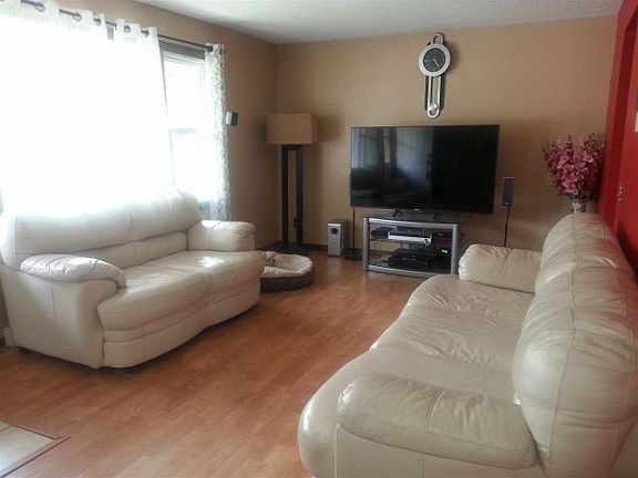 Attractive 3 bedroom, 1.5 bath, half-duplex condominium on a quiet cul-de-sac. Features include: NO CONDO FEES, siding-2yrs., front windows-3yrs. main-floor family room w/ fireplace and deck access, fenced yard and attached garage. Nearly 1500 square feet with full basement for future living and storage space. Measurements are approx.