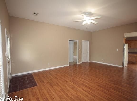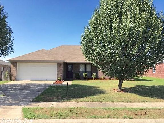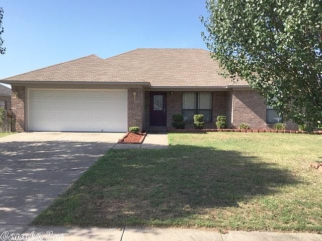 3BR/2Ba Brick home with beautiful trees in front yard. Hardwood floors in liv room, kitchen, and dining room; carpet in bedrooms, tile in wet areas. Gas log fireplace, Sliding patio door off dining, split plan, dbl vanity in master bathroom, large fenced back yard, 2 car garage, refrigerator conveys with sale. Great place to purchase just as Vilonia School starts! Also qualifies 100% financing. Agents see remarks.