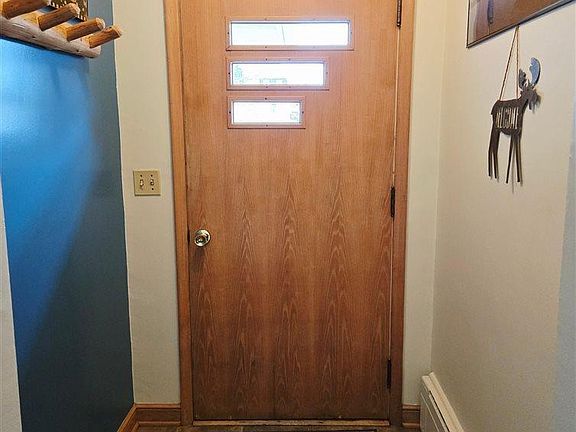 This one-story home offers more than meets the eye. The front entry leads to a carpeted living room that flows into the tiled eat-in kitchen with retro lighting and metal cabinets. The main floor includes two bedrooms with original hardwood floors, a full bath, and multiple closets for storage. A breezeway connects the home to a 1.5-stall garage and provides access to a concrete patio with a privacy fence. The backyard includes a garden shed and an apple tree. The lower level features an additional bedroom, bath, living area with a dry bar, laundry area, and more storage space. Built in 1956, this home offers functional living areas and classic design elements.