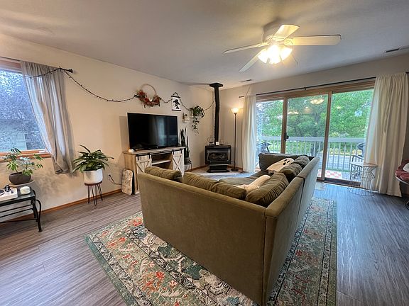 There is so much to offer in this 3 bedroom, 2 bath single level condo. There is an oversized 1 car garage with storage loft. 2 assigned parking spaces with extra parking for guests. The condo is nestled in an established neighborhood amount large trees and mature landscaping. The living room is open and has great space, natural light and a free standing gas stove. There is a balcony accessed by a patio door off the living room. Main bedroom has an ensuite bathroom and walk-in closet. The other bedrooms are on the other side of the condo next to the hallway bathroom. This upstairs condo had covered stairs and entry.