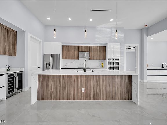 Discover luxury Florida living in this brand-new 2025 custom pool home! Designed for seamless indoor–outdoor living, it features a sunset-facing lanai with summer kitchen and designer shower wall. Inside, enjoy large porcelain tile floors, tray ceilings, and a chef’s kitchen with waterfall quartz island, premium appliances, wine bar, and coffee bar. The primary suite offers a spa-style bath with freestanding tub, walk-through shower, and custom walk-in closet. City water & sewer, assessments fully paid. Built to the 2025 Florida Building Code with impact-rated materials and energy-efficient systems.