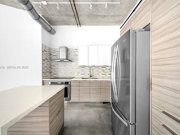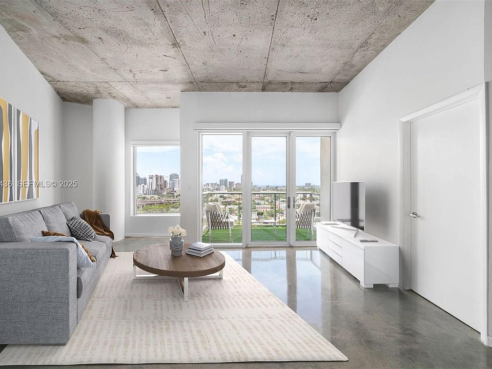 Experience modern Miami living in this renovated 1,009 SF, 2-bed/2-bath residence in a building designed by award-winning Chad Oppenheim. The loft-style home features soaring exposed ceilings, oversized impact windows, polished concrete floors, blackout and sheer shades, new A/C, and an open layout with enclosed bedrooms. The kitchen includes custom cabinetry, quartz countertops, a center island, and premium appliances. The spacious primary suite offers a panoramic window, walk-in closet, and bathroom with bathtub. Enjoy direct water views of the river and intracoastal from the private balcony. Additional conveniences include a Samsung washer and dryer and one assigned parking space (G3-890). Residents indulge in an exceptional collection of amenities: infinity-edge pool, fitness center, sauna and steam room, tennis court, meditation garden, entertainment room with pool table, dog park, business center, valet parking, 24-hour security, bicycle storage, a stunning lobby, and Gallery Hall. Perfectly positioned near Brickell and Downtown, this home offers the best of Miami living in a resort-style setting.