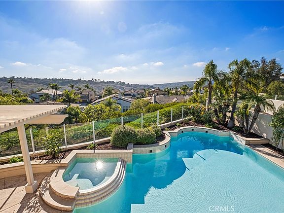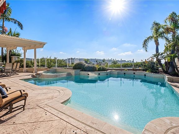 SUNSET and OCEAN/CANYON VIEWS abound in this coastal pool home and what better spot to relax and enjoy a Southern California lifestyle than 10 Salermo! Don't miss the endless views and coveted cul de sac location! This newly painted interior five-bedroom home is situated at one of the highest points in Marina Hills, and rarely do homes on this street come on the market! Situated at the end of the cul de sac with an extremely long driveway, this popular home has it all, with a downstairs bedroom (currently being used as an office) and full bath, open concept kitchen and a family room with a fireplace, built-in cabinetry, all that is centered on capturing your sunset and ocean views! Right when you enter, the high ceilings in the entry and living room beckon you to the backyard, which has a beautiful saltwater pool and spa, a newer pergola for Al Fresco dining, stamped concrete, and a built-in barbecue plus a refrigerator to enjoy, all positioned towards the stunning view! This home has been meticulously maintained to include full Pex Repipe, Epoxy garage floors with cabinets, central vacuum, newer exterior paint, newer pool pump, maple cabinetry and more! Enjoy more endless ocean views from your primary bedroom with a cozy fireplace, dual closets and a newly tiled floor with a soaking tub! Upstairs, you have three more large secondary bedrooms and dual sink bathroom with tub/shower! Marina Hills Community has world-class amenities, including a Junior Olympic-sized pool, wading pool, lighted tennis and pickleball courts, a clubhouse, a barbecue area, a bocce ball, a soccer field, a baseball field, parks and hiking trails close by that takes you to Salt Creek Beach, Dana Point Harbor, and even Laguna Beaches, are just a few miles away! Community events and food trucks are an added plus! Award-winning Blue Ribbon schools, no Mello Roos and low HOA! This home gives you a slice of coastal paradise that is rarely found!