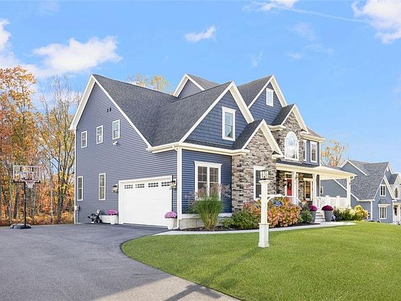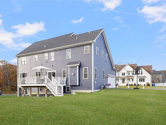 Welcome to 10 Scarlett Way, Cranston, RI, a custom-built masterpiece that perfectly blends timeless elegance with modern luxury. Handcrafted and thoughtfully designed in 2022, this exceptional residence offers the ultimate in comfort, style, and functionality in the heart of desirable Western Cranston. Situated on a quiet cul-de-sac, this 4 bed, 2.5 bath home showcases craftsmanship and premium finishes throughout. The stunning chef’s kitchen features a large center island, quartz counters, stainless steel appliances, a spacious walk-in pantry, and convenient mudroom off the 2-car garage. The family room has coffered ceiling with gas fireplace flowing seamlessly from the kitchen to the backyard deck. A grand, light-filled foyer with transom windows welcomes you to elegant formal living and dining rooms. Upstairs, the spa-inspired primary suite is a retreat of its own with 3 walk-in closets, a private office or nursery, a luxurious soaking tub, and a double walk-in shower. Three additional bedrooms, a full bath, and 2nd floor laundry room. The unfinished walkout lower level is ready for your custom touches, already plumbed for a future bath. Enjoy effortless access to major highways Rt 37, I-295/95, Garden City’s shopping and dining, TF Green Airport, and Providence. Boston and New York just a train ride away. Nestled in a serene neighborhood, 10 Scarlett Way offers a rare balance of privacy, convenience, and modern elegance—move-in ready to celebrate the holidays in style!