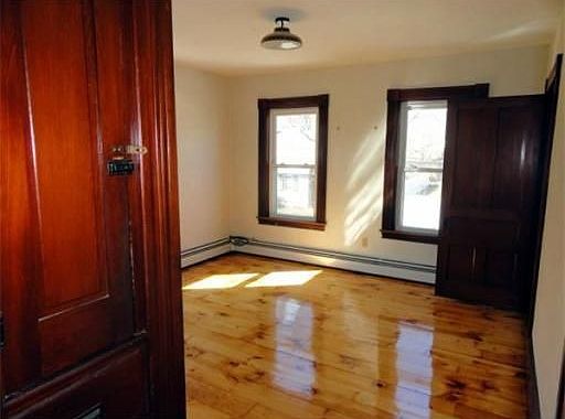The 2-family you've been looking for! One-Car Garage; Residential side street; Level Backyard; Charming front porch; Good commuter location. Well-maintained units with gorgeous refinished wide pine floors throughout, natural woodwork, replacement windows, many built-ins and walk in pantry. 4 Rooms each, so 2-BR units or 1-BR units with formal dining room, plus opportunity in finished 3rd level walk-up attic. Economical gas shared heat and hot water. Perfect for owner-occupant or investor!