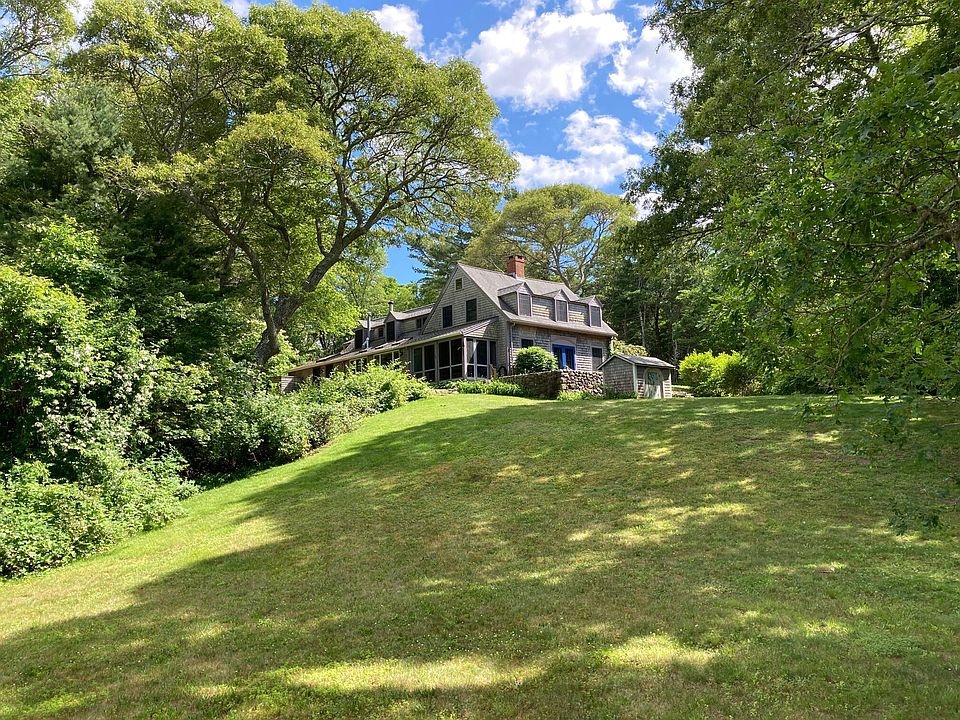 Tucked away in a quiet corner of the Cape is this year-round waterfront shingle style home. Red Brook Harbor is barefoot steps away. Enjoy swimming, boating, kayaking or just relax and enjoy your view. Located in the seaside village of Cataumet, just minutes from the Bourne Bridge. Updated in 2013 - it is a wonderful blend of new and old. Open concept kitchen and dining, large living/great room with wood fired stove, fire-placed library, powder room with shower, laundry area, and multiple porches and terraces to enjoy the outdoors. Upstairs primary bedroom ensuite - renovated bathroom with double sinks, large shower and walk in closet, 2 additional bedrooms that share a renovated bathroom plus a small play/study room. Skylights, wood floors, nooks and crannies, and a generator. Water views big and small and privately sited on 1.7 acres. Heated basement plus a two car garage. A place to enjoy every season. Conservation trails across the street. Sandy beaches on Bassetts Island and The Chart Room Restaurant are both a short boat ride away.