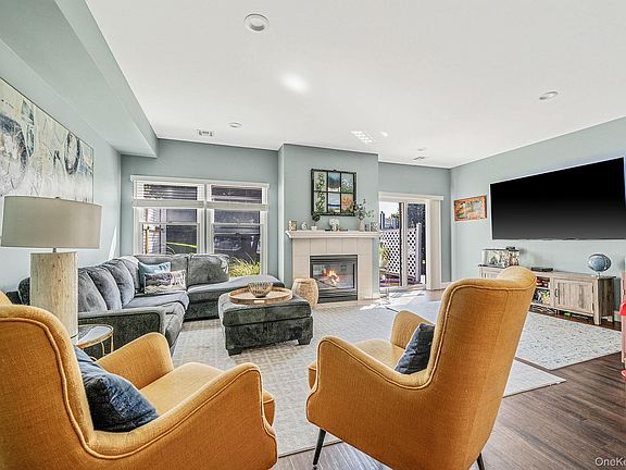 Welcome to this beautifully maintained 2-bedroom, 2.5-bath condominium located just minutes from Port Jefferson Village. Come inside to find a spacious eat-in kitchen with a center island, perfect for gathering and everyday living. The open-concept living room features a cozy fireplace and sliding glass doors that lead to a private brick patio, creating a seamless indoor-outdoor flow. Upstairs, you’ll find a convenient laundry room along with two oversized bedrooms, each with its own ensuite bathroom and walk-in closet. The home is further enhanced by recent updates, including a new hot water heater and new AC system. Additional highlights include an attached garage, attic access for extra storage, and a community that is meticulously maintained. With its prime location close to shops, dining, and Port Jefferson Harbor, this home offers comfort, convenience, and style all in one.