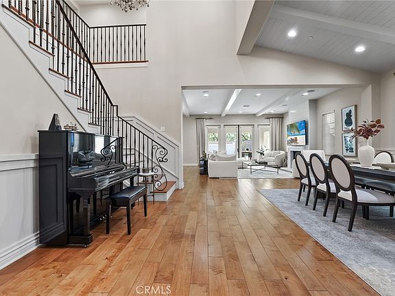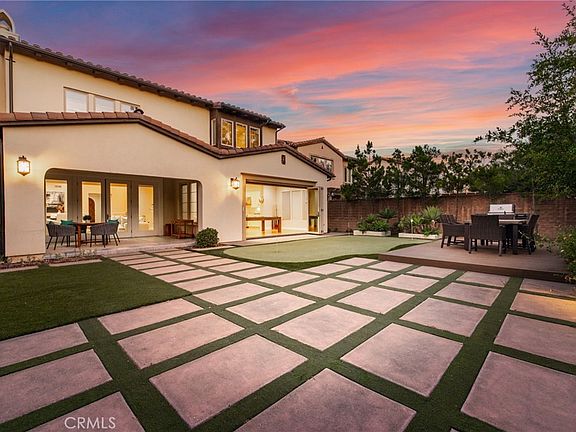 Behind the prestigious gates of The Groves at Orchard Hills, this distinctive residence showcases breathtaking designer finishes that set it apart from every home in its class. Flooded with natural light, the spectacular open layout features soaring ceilings, wrought-iron accents, rich wood flooring, and dramatic beams, creating an inviting space for both luxurious family living and grand entertaining. The chef-inspired kitchen is a true showpiece with sleek white cabinetry, custom countertops, high-caliber stainless appliances, and a large center island overlooking the great room, dining area, and conservatory. Accordion bi-fold doors blur the line between indoors and outdoors, opening to a spacious backyard designed for gatherings and relaxation. The primary suite offers a serene retreat with a spa-like bath and dual walk-in closets, while the generous secondary bedrooms each include en suite baths. A versatile bonus room, upstairs laundry, and an extended main-floor bedroom with private bath ensure functionality and flexibility for modern living. Premium upgrades include Custom window treatments & premier shade system, alarm system & surround sound, Tankless water heater & paid off solar panels, and Built-in EV charger. The backyard oasis is equally impressive, featuring California room, an open artificial grass play area with mini golf green, a wood-paved entertainment space, and a natural stone wall fountain for tranquil ambiance. This turn-key home is complemented by Orchard Hills’ world-class amenities: multiple pools, a clubhouse, parks, hiking trails, basketball and tennis courts, and proximity to award-winning schools and the vibrant Orchard Hills Shopping Center. Don’t miss this rare opportunity to enjoy resort-style living in one of Irvine’s most prestigious neighborhoods!