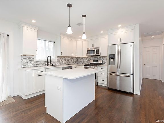 Welcome to 10 Sharon Drive! A quiet, interior East Patchogue neighborhood close to village conveniences. The home is thoughtfully updated for peace of mind: roof, electrical, plumbing, central AC, and a high-efficiency boiler. The open quartz-island kitchen flows into sunlit living space with hardwood floors. The expansive primary suite offers a luxurious bath and an extra-large, custom walk-in closet. Cozy up by the new wood-burning stove, or step outside to your private retreat with an in-ground pool, deck, and patio. Perfect for relaxing or entertaining year-round. Patchogue-Medford Schools. No Village Taxes.