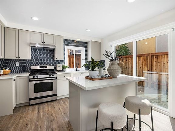 Custom tile gas fireplaceOutdoor fireplacePrivate backyardShaker style cabinetryRemodeled gourmet kitchenAbundance of natural lightSleek high-end finishes