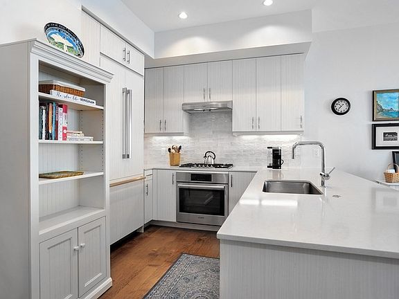 This luxurious well-appointed home is set in the trendy Brio complex located in the exciting waterfront community--the Hingham Shipyard. Here, you are surrounded by a marina, stylish and trendy restaurants, shops, grocery stores, a variety of services, and even a movie theatre. This stunning well-appointed unit has an open floor plan with 9 ft ceilings and floor to ceiling windows. The contemporary kitchen with tiled backsplash, quartz countertops, and paneled Bosch appliances leads to the quaint dining area and spacious and bright living room featuring French doors that open to a Juliet balcony. The large bedroom has a luxurious bathroom with a walk-in shower, double vanity, and laundry. Add'l guest bath, too! Enjoy the sunset on the large landscaped elevated patio overlooking Hingham Harbor as you grill and chill--then gather around the gas firepit to wind down from the day. Pet wash, assigned storage, and gated parking. Walk to the high-speed ferry that whisks you into Boston.