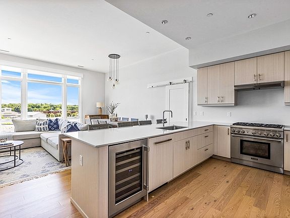 Experience luxury waterfront living in this designer PENTHOUSE condo at BRIO, Hinghams premier waterfront community. This top-floor residence features a spacious living room with floor-to-ceiling windows and harbor views, a chefs kitchen with high-end appliances, elegant dining area, and a powder room. The primary suite offers a spa-inspired bath and walk-in closet, while the guest suite includes its own full bath. Enjoy easy living with, two heated garage spaces, two storage units, and access to a private garden terrace with fire pit and grill. Ideally located next to lots of shopping, dining, the commuter boat to Boston/Logan Airport, and just minutes to local beaches.