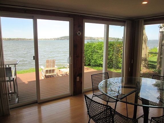 Breathtaking ocean views & private water access from this newly remodeled 2 bdrm, 2 full bath year round oceanfront home! Wake up in the newly remodeled 2nd flr bedroom w/custom built balcony to enjoy your fav bev & amazing views! Spacious tiled shower in gorgeous new bathroom w/built-in closets & a separate rm for your office space! Each rm w/stunning water views! Updates include HDWD flooring, maint. free Azek decking, gas fireplace~ perfect place to hunker down during the New England winters, new windows, new SS appliances, newer cabinets w/soft close drawers & new picture window! Pride of ownership shows thru out! Roof(20 yrs), heating system(10 yrs), insulation installed in ceiling of crawl space, chimney recapped & repointed, 4 New Anderson sliders & sea wall repair. On Town water & Town sewer! Sewer betterment is paid in full! Paddle board, kayak, take a swim or just sit back & relax! Optional to join this fun beach community for $50 yr! Boat mooring possiblity~see harbormaster!