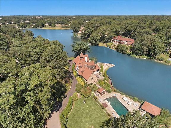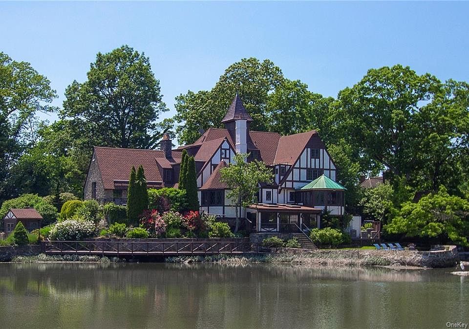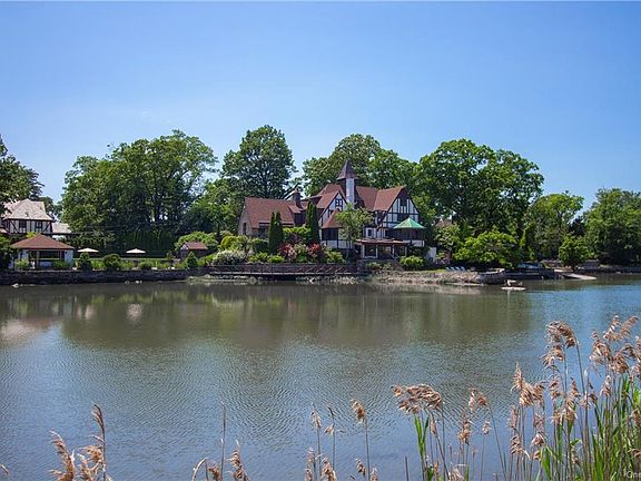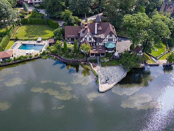 Taxes being grieved to under $100K. Enchanting & private waterfront Tudor castle features exceptional panoramic water views stretching to NYC and Long Island. Upon entering the compound, Van Amringe Mill Pond greets you as well as 700 ft of waterfront, a private dock and launching ramp for small watercraft. While living in the outdoors, enjoy the in-ground heated Gunite pool, cabana with full amenities, bluestone patio, stone walkways, jacuzzi, including multiple level patios, and a level grass field for training/athletics. This 7BR/7.1BA majestic home features tremendous space with fabulous flow for entertaining, oak floors and character details of the period all renovated to today's standards of superior luxury living. An eat-in gourmet kitchen, formal dining room, vaulted ceilings in the grand living room, romantic master bedroom suite, and versatile family/gaming rooms plus 5 fireplaces will make this storybook home your happily ever after! Full gym and walk-out.