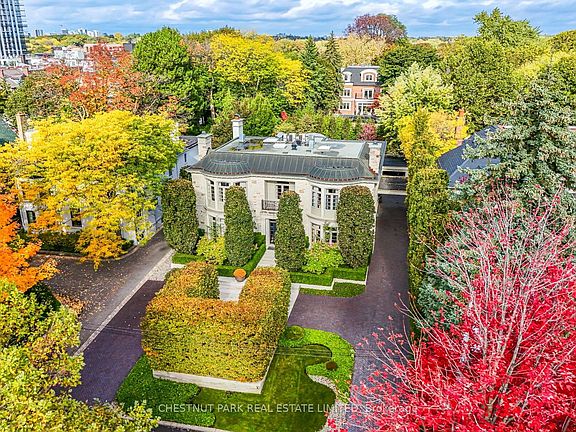 This remarkable residence stands apart among Forest Hill's most architecturally sophisticated homes. Designed & lived in by the current owners for their young family, its adaptable 8,345' layout easily accommodates executive lifestyles-from entertaining with ease to family-focused living where the stunning Kit can seamlessly open to the adjoining DR & Fam areas, & the lower media room/play room may be a children's play room or creative studio. Balancing warmth with precision, the interiors evoke serene modernism through tactile finishes & finely measured detail. Pale oak, bronze fixtures, honed limestone, & softly textured surfaces create a natural palette that diffuses light with quiet luxury. Expansive windows frame curated garden views, merging the exquisite interiors with the lush landscape. Featured in design publications, the home embodies elevated craftsmanship, soaring 11' clgs, Venetian plaster, de Gournay, molded & panelled walls, & a circular DR complemented by a study. Two offices on the main & a 14' high Library offer exceptional versatility for modern professionals. Thoughtful updates include gallery-grade lighting ('21), a Bloomsbury kitchen with servery & adjoining mudroom ('18/19), refinished rift-sawn oak herringbone floors ('18), & exquisite terraces & gardens by Janet Rosenberg ('17/18). Exemplary appointments include 2 1/4" thick veneered & hand-waxed crotch mahogany doors with custom Nanz hardware, a 31' grand hall anchored by a dramatic 3-floor split staircase, Scalamandré silk-upholstered walls in the Fam Rm, & a sumptuous PR suite featuring a vaulted Atrium Sitting area, dual ensuites with sep dressing zones, & handwoven silk broadloom. A light-filled 28' Hall Sitting area overlooks the grounds & striking Library. The lower provides a 5th & 6th BDRM, a fabulous Media/Play Rm, wine storage, a fitness or yoga studio, lots of storage & Lau. Radiant-heated floors in principal rooms.
