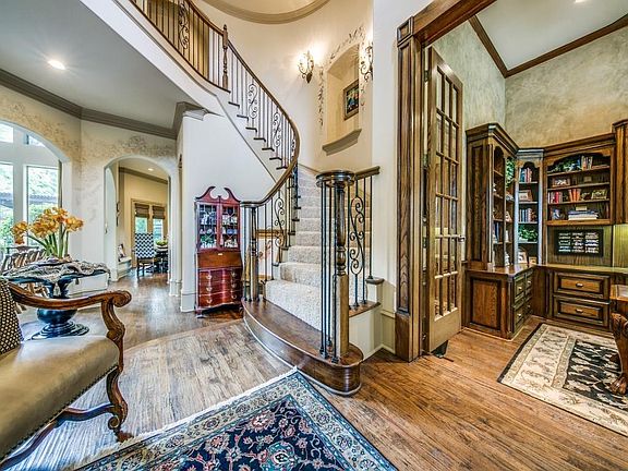 Stunning home with spectacular finish-out and incredible back-yard for relaxing & entertaining! Wrought iron garden entry welcomes you to this amazing residence featuring a stately Study, hand scraped wood floors, towering ceilings and floor to ceiling windows. Chef's Kitchen opens to breakfast area and great room with spectacular views of lush outdoor living area with beautiful backyard oasis. Enjoy the serenity of the saltwater pool & spa surrounded by lush landscaping from the cozy cabana with fireplace or veranda covered patio. True master suite w- sitting area, luxurious spa like master bath w-his & her vanities. Upstairs features a large gameroom overlooking private backyard and spacious Media room.