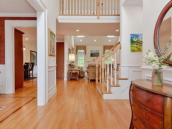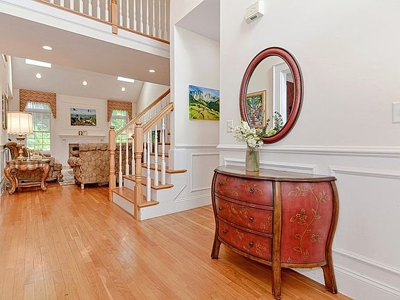 Welcome home to this stunning colonial, beautifully sited in the very heart of Northborough on its most private and wooded cul-de-sac. This custom-built home features a rare lower AND upper level Ensuite Main Bedroom! A grand 2-story foyer that leads to a skylit gourmet kitchen with an eat-in area, desk area, island, granite & SS appliances. Oak Hardwood floors throughout the main level that features an Ensuite main bedroom with jacuzzi & shower & walk-in closet, formal dining room, cozy skylit family / living open area with hearth fireplace, den and laundry room. Upper floor features a second Ensuite main or guest bedroom with jacuzzi & double shower, a walk in closet, ceiling fan and a flex room / home-office; gorgeous bonus / multi-purpose great room with 3 large skylight windows, ceiling fan. 2 spacious bedrooms & a Full-bathroom complete the upper floor. Partially finished basement with laminate floors which can be used as playroom or exercise room. Firepit & shed in the yard.
