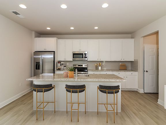 This thoughtfully designed two-story home offers 3 bedrooms and 2.5 baths, perfectly balancing style and comfort. The chef-inspired kitchen boasts granite countertops, stainless steel appliances, and timeless shaker-style cabinetry. With an open-concept layout and hardwood-inspired plank flooring, the living spaces flow seamlessly for everyday living and entertaining. Centralized heating and air conditioning ensure year-round comfort, while the attached two-car garage and fenced backyard provide convenience.