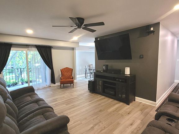 **LISTING DESCRIPTION UPDATED 10/3/2025** This top-floor penthouse condo has been extensively renovated from top to bottom, offering modern finishes, durable materials, and functional design updates. Every major system and space has been improved. LAYOUT IMPROVEMENTS: Walls were reconfigured to expand the footprint and create a more open flow. A dedicated laundry closet was added for convenience, featuring an oversized Maytag washer and dryer. BATHROOMS: The original 1.5 baths were converted into 2 full baths. Both include new tile, new toilets, and stone-top vanities with Delta faucets. Showers were rebuilt with concrete board and green board for long-lasting durability. The primary bath includes a new tub surround and exhaust fan. The hall bath features a raised ceiling, full tiled walk-in shower, and a new exhaust fan with LED light. Mold and mildew-resistant PVC baseboards were installed in both bathrooms. PLUMBING: All water shut-off valves, sinks, and fixtures were replaced throughout the unit, ensuring updated and reliable plumbing. FLOORING AND FINISHES: All previous carpet was removed, subfloor leveled, and commercial-grade waterproof luxury vinyl plank installed throughout. New 5” decorative baseboard trim was added, and the entire condo has been freshly painted with accent walls for a modern finish. WINDOWS & DOORS: All windows and the sliding glass door were replaced with energy-efficient, noise-reduced models. Bedroom windows tilt inward for easy cleaning. LIGHTING & ELECTRICAL: Significant electrical upgrades were completed, including a new electrical panel and replacement of all switches/outlets. Lutron Alexa-ready dimmers were installed, with 3- and 4-way wireless switching and remote controls. Downlighting and/or ceiling fans were added in every room. Commercial-grade dim to warm 3000k-1700k fixtures are indirect in living room & dining area and direct lighting in hallways & kitchen. Built-in GFI night lights were installed in the kitchen and baths. The kitchen features commercial-grade dimmable downlights at 4,000k for task lighting, eliminating shadows in prep areas. Surround sound and ethernet wiring were run through the living room walls. Modern light fixtures were added in the bathrooms and over the primary bedroom vanity. HVAC: Gas furnace and HVAC were replaced 2.5 years ago, including updated breaker, gas shut-off valve, and insulated ducts. A WiFi-enabled thermostat was added in the living room. KITCHEN: The kitchen was fully remodeled. Bulkheads were removed to allow for a full-size refrigerator. Cabinets were updated with pull-out drawers for additional storage. Dark granite countertops with a 4” backsplash complement an oversized stainless steel sink, Kohler pull-down faucet, and new garbage disposal. Ventilation was upgraded with a larger, quieter exhaust fan. Appliances include dark stainless steel Whirlpool refrigerator, dishwasher, and gas oven. ADDITIONAL UPGRADES: New closet doors were installed, and the primary bedroom was redesigned with updated finishes. A TV wall mount with in-wall hidden cable pass-through was added, complete with pull string for future wiring. BUILDING UPDATES: The roof was replaced five years ago, and tuckpointing completed one year ago, both handled by the condo association. EFFICIENCY & COSTS: Gas and water are included in the condo association fees, covering furnace operation.