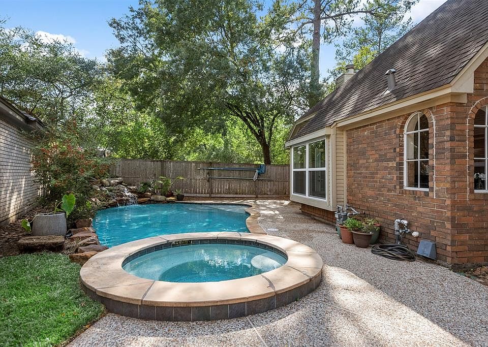 Exceptional single story home in the heart of The Woodlands with it\'s very own pool and spa! Turn-key and Beautifully updated -just waiting for you to call it HOME. Light and bright with wood-look porcelain tiled floors, high ceilings, plantation shutters, new east/west windows (2022), updated lighting and fixtures throughout. Large chefs dream kitchen with island cooktop opens to Family room for easy entertaining and wonderful views to your backyard oasis. Primary bedroom with ensuite and private enclosed deck to enjoy year-round. Spacious secondary bedrooms and fully remodeled bathroom. Large utility room with sink, folding station, washer/dryer included and an atrium. Plus backyard shed for all your outdoor belongings. Minutes from Woodlands Mall, Hughes Landing, Market Street and Waterway. Hike and Bike trails. Easy access to I-45, TX-99 and Hardy Toll Rd. This home has everything you\'ve been searching for. Sit back, relax, and enjoy your slice of paradise! Visit today!