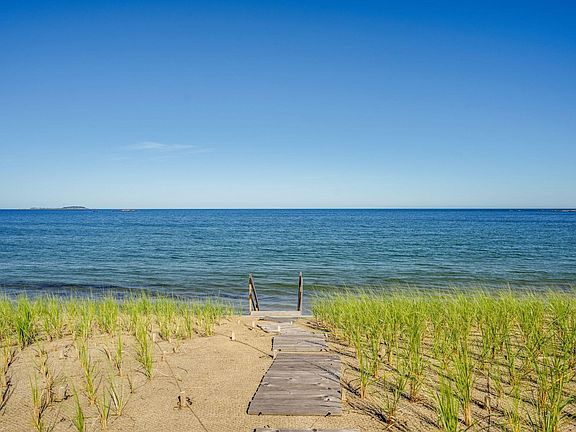 Rare offering of stunning beach front house in Prouts Neck, privately located on Scarborough Beach. This contemporary beach house was designed by nationally acclaimed architecture firm Shope Reno & Wharton and was custom built in 2005 by Wright-Ryan. It features panoramic ocean views from almost every room. The main house contains 4,600 +/- square feet of living space with an open eat-in chef's kitchen and family room, a spacious living room with fireplace, open dining area, screened-in porch, beach front deck, 5 bedrooms, 3 bathrooms and a separate guest house/garage. Beautifully appointed furnishings included. The property is .80+/- acre. Enjoy beach front living at its finest!