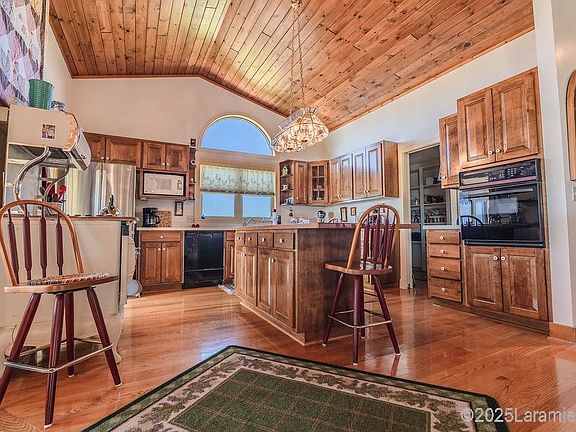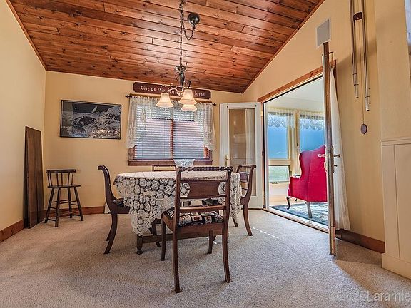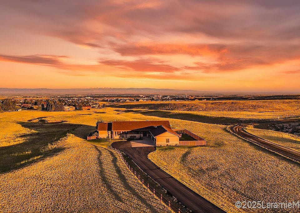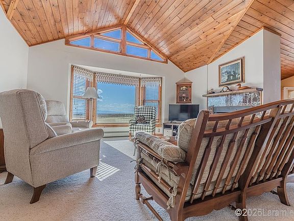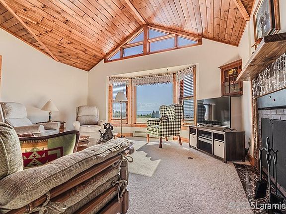 Presenting 10 Snowy View Road, an exceptional ranch-style residence featuring 3 bedrooms and 3.5 bathrooms, situated on 8.76 acres within the Snowy Acres subdivision. This meticulously maintained property offers stunning views of the Snowy Range and the Gem City, providing an ideal blend of spacious country living with convenient access to town. Constructed in 1995 with enduring quality, the home showcases vaulted ceilings and a chef’s kitchen equipped with double ovens, a substantial wood block island, and generous pantry storage. The inviting living area includes a fireplace, complemented by energy-efficient windows that capture panoramic vistas that are simply breathtaking. The generous open-air floor plan allows for additional bedrooms to be added with just a few adjustments. Added features include solid core doors with rich wood casements, a durable 50-year roof, and an oversized three-car garage – all of which combines style with functionality. A fenced fully landscaped side yard delivers privacy while maintaining a sense of openness. Properties offering this level of construction, location, and view are rarely available on the market.