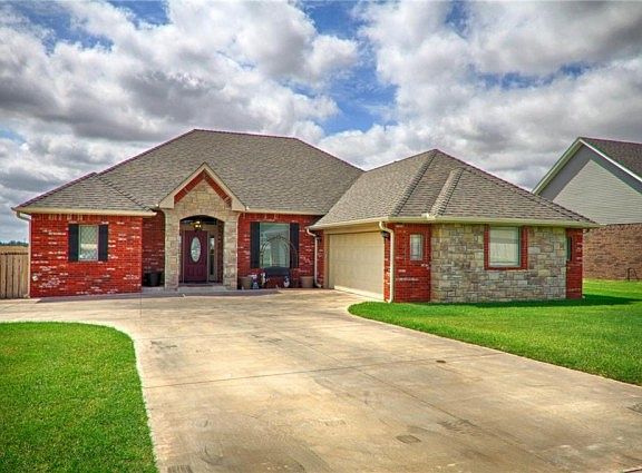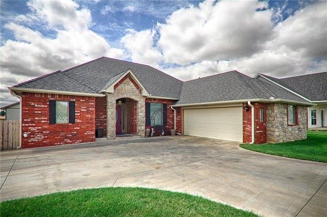 MOTIVATED SELLERS!! New wood floors recently installed throughout this nice open mother-in-law layout. The dedicated office could be a formal dining or playroom with no built-ins so is a very flexible space. The bedrooms are spacious and the master has a whirlpool tub, walk-in closet, double vanities and room for a sitting area. The 1/2 acre lot overlooks a southern field. The workshop/storage area is a strapped down permanent building & has a porch for West viewing of the sunsets with a fenced area for dogs. This home is complete with an outdoor storm shelter. This property is within walking distance to the High School & Middle School so very conveniently located. A great location for easy commuting to schools, Norman, Chickasha, OU, Okc, Bricktown, FAA, Will Rogers Airport, TAFB & Mustang.