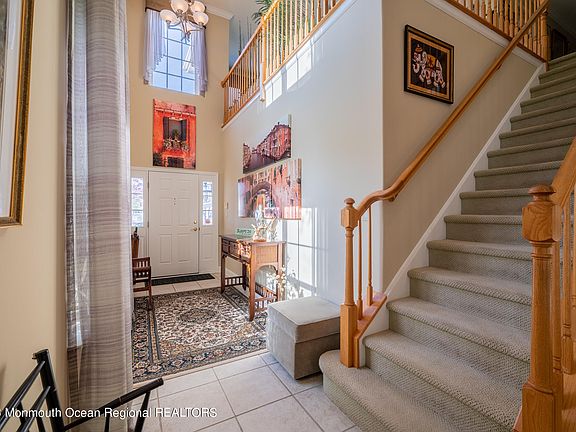 Living the resort life starts in this very special 3 bedroom home with a full loft living quarters in Four Seasons at Mirage. This Nassau Loft Royale boasts 2,896 square feet of spacious living. Upon entering the home, you can appreciate all the natural light from the 18' high west wall of windows with tinted glass offering privacy and sun fading prevention. The floor plan of this home has a great flow from the Foyer into the Living Room adjacent to both the large Dining Room and Den flanked by and Eat-In-Kitchen. The kitchen has this amazing Brazilian Minsk Green Granite, white cabinetry, stainless steel appliances and a unique chandelier over the kitchen table. The first level has the Master Bedroom Suite with a spacious Master Bathroom; a Second Bedroom another full Bathroom and and Laundry Room. Stairs from the foyer lead to the second floor living area with a Great Room, Study, Third Bedroom and full Bathroom. The two car garage offers overhead stainless steel rack storage as well as an additional Storage Room on the loft level of the home. From the Den you start your outdoor living on your very private patio. The home is surrounded by flowing trees and is professionally landscaped. This home has a great location and is just about 1,000 feet down the street from the Mirage Clubhouse full of fun indoor and outdoor activities two pools, lighted tennis courts, pickle ball, gym, clubs, crafts, wood shop and much more. Call today to see this home today! New Beginnings start at 10 Spring Lake Ct.