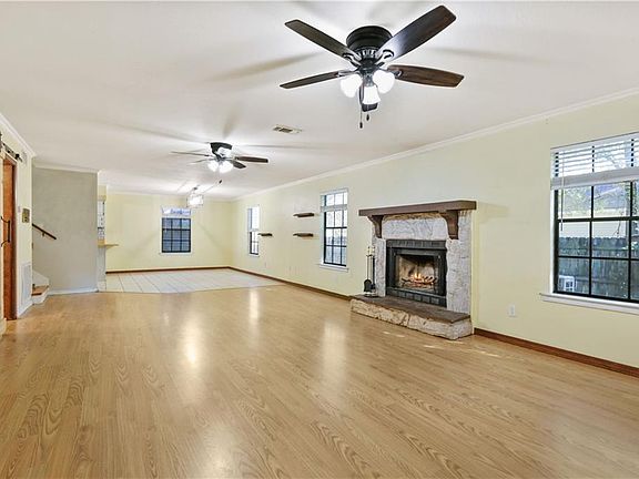 Nestled on a lush, tree-shaded lot in desirable River Forest, this spacious home offers endless potential and plenty of charm. The inviting front porch welcomes you inside to a large living room that opens to a cheerful breakfast area and kitchen with a breakfast bar, abundant cabinetry, and a walk-in pantry. A utility room includes a stackable washer and dryer for added convenience.