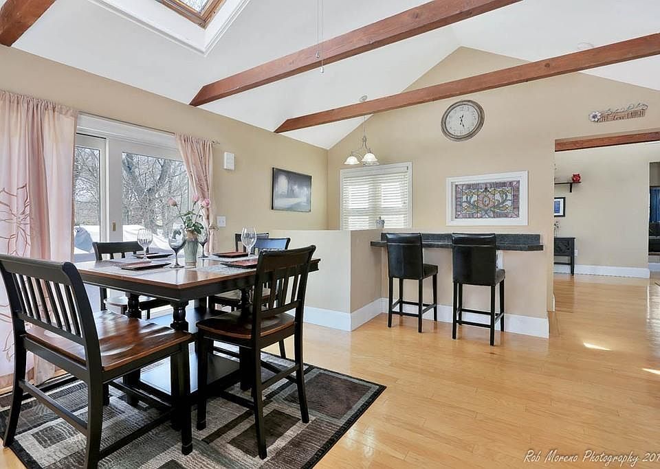 Exceptional Danvers opportunity! This fantastic condo has high ceilings with skylights & exposed beams throughout. The open floor plan provides access to a huge private deck from both the dining and living rooms - great for relaxing or entertaining. Vaulted skylit ceiling and french doors accent the spacious living room. Additional features include a breakfast bar in the kitchen, 1st floor laundry, 2014 windows throughout and hardwood floors The welcoming bonus room can be used as a home office, family room, studio or exercise area. Oversized attached garage with separate workshop and storage areas. Come see your new home!