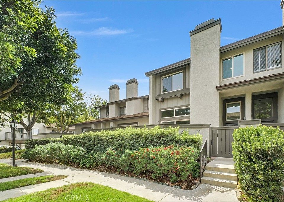 This popular Carmel floor plan is located in the desirable Turtle Rock Meadows community. The beautifully remodeled 3-bedroom, 2.5-bath offers an ideal balance of comfort, style, and functionality—all within one of Irvine’s most cherished neighborhoods. Step into the light-filled living room with its soaring ceilings, cozy fireplace, and direct access to a private front yard—perfect for blending indoor and outdoor living. The newly remodeled kitchen is a chef’s delight, featuring marble countertops, sleek cabinetry, premium stainless steel appliances (including refrigerator, wine cooler, and cappuccino maker), plus a center island with bar seating. A sliding glass door leads to a private deck, ideal for morning coffee or casual dining outdoors. The main level also includes a dining area and a convenient powder room. Upstairs, the spacious primary suite showcases vaulted ceilings featuring custom closet organizers, dual vanities with marble counters. Two additional bedrooms feature custom built-in closet organizers for maximum storage. An attached direct access two-car garage with cabinetry and laundry hookups adds everyday practicality. Newer dual-pained windows, a newer HVAC system, and newer water heater—ensure comfort and efficiency. Community amenities include two resort-style pools, expansive greenbelts, and easy access to Turtle Rock Community Park. Ideally located just minutes from world-class shopping, award-winning schools, beaches, golf, hiking, and dining—with no Mello Roos—this home offers an exceptional opportunity to experience the very best of Irvine living.
