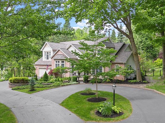 Magnificent opportunity to own your very own piece of paradise. Welcome to 10 Steele Road, nestled on over two acres of pure tranquil beauty. This four bedroom, three full and two half bathroom home features two primary suites. Enjoy the convenience of one of the primary suites located on the first floor as well as the laundry room. The cooks kitchen is absolutely exquisite with gleaming hardwoods, granite countertops, stainless steel appliances, a built in wine refrigerator and a massive island. The family room features a gorgeous stone gas fire place, huge beautiful windows with views of the park like backyard. The backyard oasis features an inground saltwater pool, hot tub with a gazebo, your very own putting green and plenty of room to entertain. This home has many updates with only the finest finishes throughout. Conveniently located near Eastview Mall and trails, this home is sure to capture your heart. Fairport electric! Delayed showings begin on June 5, 2024 at 12pm and delayed negotiations June 10, 2024 at 12pm.