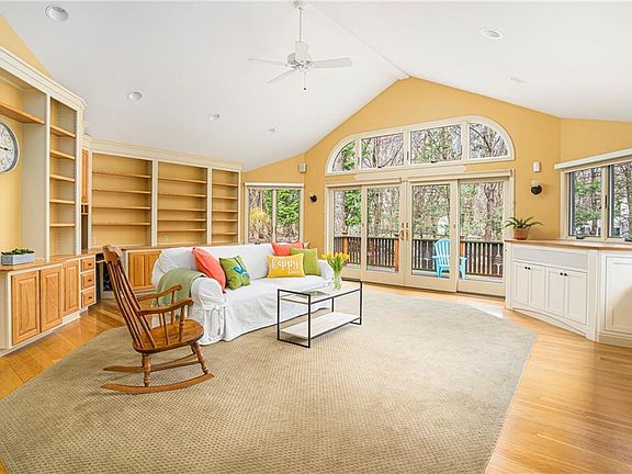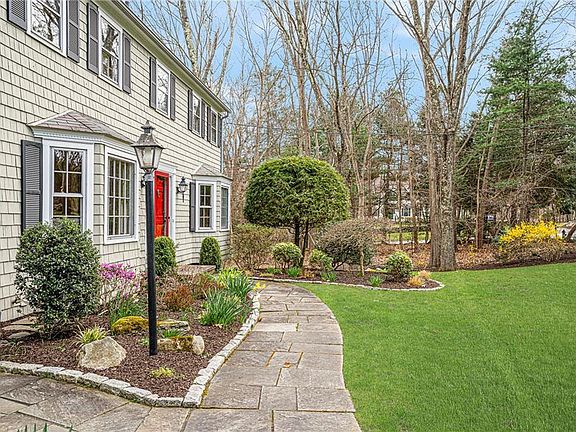 Lovely 4 bedroom Colonial in desirable Stone Ridge neighborhood with fabulous outdoor entertaining space. You're going to love the Great room with a cathedral ceiling, tons of natural light, built-in bookcases and storage and glass sliders to the expansive back deck. Gather around the cozy wood burning fireplace in the family room or enjoy the back to front living room with a glass French door that leads to the screened in porch. Entertain in the formal dining room or dine more casually in the eat-in-kitchen with granite counters and tile backsplash. The laundry area and half bath complete the first floor. The second floor offers a Master bedroom with an en-suite bath with tile shower, 3 additional bedrooms, all with hardwood floors and a full bath with a tile tub/shower. The lower level walkout recreation room with half bath provides another option for additional living/play space. The back deck with built-in fire pit and seating is a great spot to gather with family and friends. Enjoy the lovely yard and the tranquility of the waterfall feature and koi pond. Additional features include Central Air, over 3800 sq ft of total living space, 2 car garage (with 3rd tandem garage space), sprinklers and 1 acre lot. Easy access to shopping, highways and vibrant downtown East Greenwich with terrific restaurants and award winning schools. Home Warranty Included. Virtual Tour available upon request.