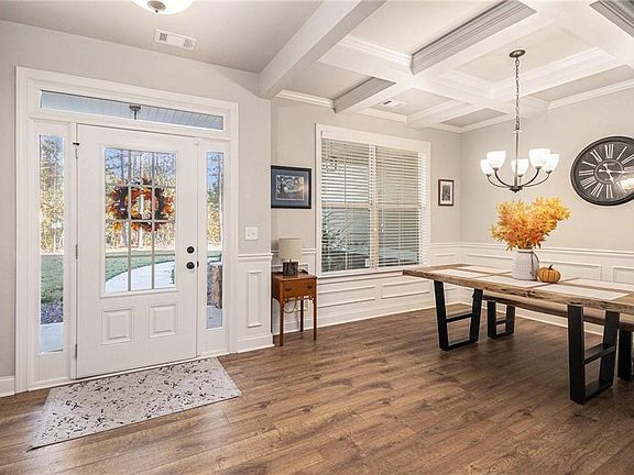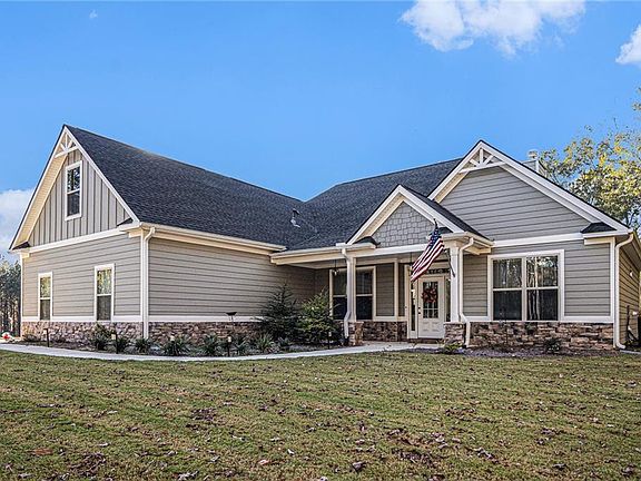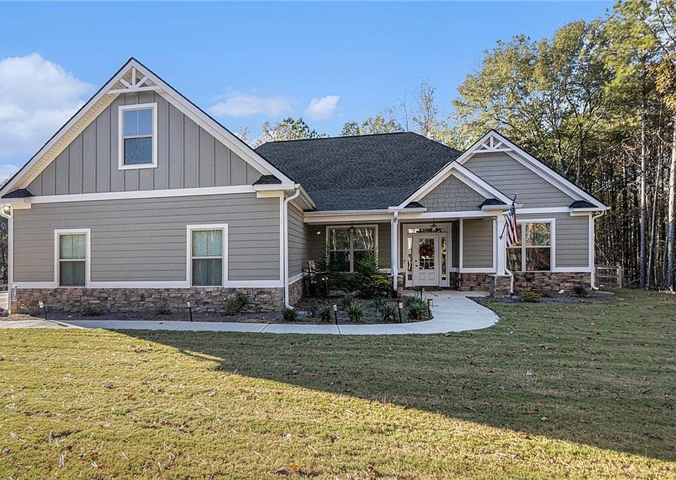 6% Assumable FHA Rate with Roam! Gorgeous 4 bed/3 bath craftsman home with stunning trapezoid windows nestled on 3 acres in a charming one cul-de-sac neighborhood. This new construction home in Kingston is just inside the Bartow County line. Step inside to a light, airy, and open feel provided by a gorgeous trapezoid window wall with beautiful tree lined rear property views providing an incredible private setting with plenty of room for a pool. This home features a welcoming roomy foyer including a shiplap wall, and coffered ceiling dining room overlooking an oversized great room with brick fireplace. The bright and cheery kitchen is perfect for daily family gatherings and entertaining with a nice sized island/eat-in, quartz countertops, cabinets galore, and stainless steel appliances. On the main floor you'll find a spacious master bedroom with separate shower and soaking tub, double quartz vanities, a massive walk-in closet, as well as two large bedrooms and one full bath. Upstairs is a huge bonus bedroom including its own full bath and walk-in closet. Additional features include custom upgraded lighting, oversized utility/mud room, nice sized laundry room, side entry garage, extensive hardwood laminate flooring, crown moulding, and large front and rear covered porches, including ceiling fans. This home is one of many new construction craftsman style luxury homes on a picturesque and peaceful road -- a beautiful overall setting. The Stratford Community is conveniently located near Rome or Cartersville shopping, restaurants, and entertainment. This beautiful and spacious home offers the perfect blend of comfort and convenience. Ideally located just 11 miles from Rome, GA, a little over 4 miles from the renowned Barnsley Gardens Resort, and only 4 miles from downtown Adairsville. For those seeking nearby employment opportunities, the new HSAGP Energy Battery Plant—projected to hire nearly 3,500 associates—is just a short 10-minute drive away. Enjoy peaceful living with easy access to work, recreation, and local amenities.