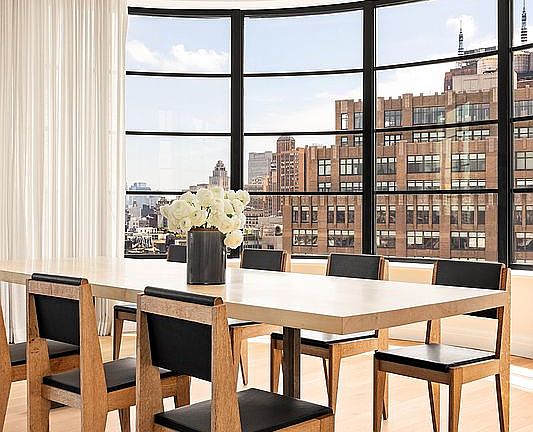 The 12th floor at 10 Sullivan is a truly exceptional full-floor residence offering 2,950 square feet of refined interior space, three bedrooms, and three and a half baths-all elevated by panoramic, unobstructed views in every direction. Wrapped in 404 square feet of private outdoor space along the western and northern corners, this one-of-a-kind home captures panoramic views of iconic NYC landmarks.