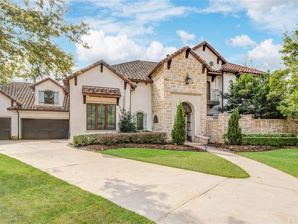 A Fabulous, One-of-a-Kind Home on an Oversized Golf Course Lot! Through the beautiful wooden gate entry, elegance is in every detail of this stunning home. Featuring a formal dining room, private study, a spacious family room w/ wood-beamed ceilings, power shades, fireplaces, and rich wood flooring, this home exudes both luxury and comfort. Soaring staircase w/ custom iron railings and designer light fixtures set the tone for elegance. Gourmet island kitchen showcasing Turkish travertine countertops, farm sink, Thermador stainless steel appliances, gas cooktop, and a butler’s pantry is a chef's dream. The primary suite features wood flooring, wood-beamed ceilings, fireplace, spa-like bathroom w/ a double steam shower, two custom closets, and marble countertops. More highlights include a garage apartment, mosquito misting system, whole-house generator, pool/spa, cabana, outdoor kitchen, and a large covered patio w/ fireplace. Enjoy the integrated audio sound system and so much more!