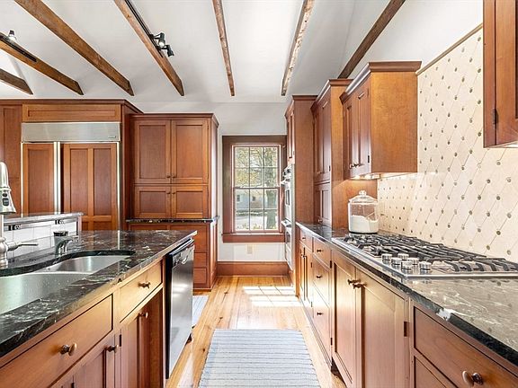 Reminiscent of a Vermont Farm,this renovated property combines today's open spaces w/period charm providing the perfect style for today’s buyer.Enter the spacious open foyer linking the original home to an expansive open-floorplan addition w/ a dramatic dining room & large step down family room with beautiful windows, built-ins & stone fireplace.The state of the art kitchen is complete w/large island, steam oven & an adjacent den featuring banquette seating & fireplace adorned w/hand forged sconces & is the perfect place to cozy up on a cold day.Two additional rooms on the 1st floor are perfect for a playroom or 1st floor bedroom.Upstairs there are 5 spacious bedrooms including a master w/vast windows,high ceilings&spa-like bath as well as two additional family baths, 2nd floor laundry & loft space.The private yard presents a beautiful free form pool, lush lawns, patios & specimen trees.In addition to all this,is the masterfully restored 2 story BARN that is roughed & ready to finish!