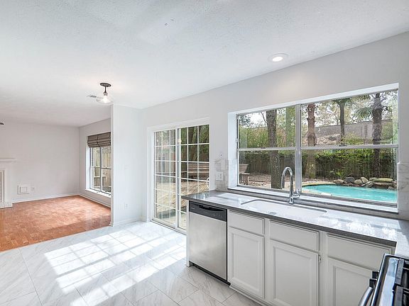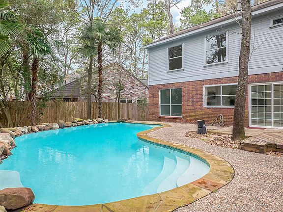 4 bedroom home with updated interior in today's popular colors and finishes! Recent interior paint throughout! Kitchen updates include beautiful hard surface quartz countertops, Blanco sink and faucet, microwave, tile floors, painted white cabinets. Recent tile in primary bath, upstairs bath and kitchen. Upstairs secondary bedroom and hall flooring are laminate. Great updated primary bathroom including frameless shower, sinks, quartz counters. Replaced ceiling fans, light fixtures throughout. Private backyard with lagoon-like pool, rock waterfall, tropical landscaping. Refrigerator, washer and dryer included. Top Woodlands Schools, quiet cul-de-sac street, park in neighborhood. Easy access to Woodlands Parkway, I-45. Lease includes pool service. Responsible local landlords provide excellen lease lease experience. Small pets allowed on case-by case basis. Photos from previous listing. New Photos will be posted soon.