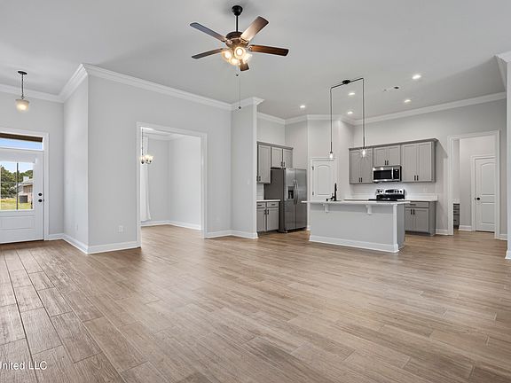 Welcome to this stunning 3-bedroom, 2-bathroom home in the heart of Long Beach, Mississippi. Built just one year ago, this home showcases the perfect blend of modern design and comfortable living. The exterior boasts gutters already installed for you convenience, charming brickwork complemented by a spacious, well-maintained lawn, ideal for outdoor activities.