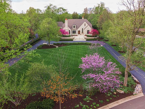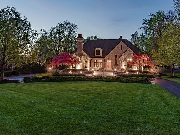 Stunning One-of-a-Kind 1.5 Story Stone Home! Breathtaking spectacular landscaped and fenced acre lot. Circle Drive, Detached Carriage House, Beautiful inviting entry with remote chandelier. This custom home has so much to offer. Amazing beamed ceilings in many rooms, 3 fireplaces and Wood shutters throughout. Dream Kitchen with large center island eating bar, abundance of cabinets, high end appliances, coffee bar, walk in updated pantry and bakers pantry added. Family Room w/fireplace and many windows. Vaulted beam ceiling in the Living Room full stone wall fireplace, wet bar and a wall of windows to covered patio. Back stairway to private Office space and additional storage. Main Level Primary Suite w/ beamed ceiling, Sitting Room, his and her custom walk in closets and beautiful bath w/heated floors. 3 Large bedrooms up and 2 full baths. Basement is ready for your entertaining with a huge wet bar, custom wine cellar, Family Room with fireplace, Bedroom, full bath and great entertainment space. 4 car garage, electric charging station. Absolutely gorgeous backyard with covered patio, paver patio and a great space for fire pit with stone wall. Central Vac, Security system, irrigation, Smart home features, Sonos sound system and a Generator. So many updates!!