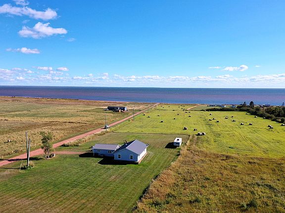 Hebron is a rural community just south of O'Leary. Close to stores and all amenities this area of western PEI has some of the most breathtaking and unspoiled natural open spaces on the Island. This property is a waterfront oasis overlooking Dog Island and the ocean. Approximately 10 acres are used for hay and the remaining 1 acre includes the house. Sunset Road is a private road that leads right down to the ocean. The 2 bedroom house has a newer garage/workshop heated by a propane heater. The house is sunny with lots of windows and garden doors to a deck. It features a utility room with shelving for storage. The kitchen is fully equipped with oak cabinetry and a oversize propane stove. The bath is a combination laundry/bath. The land has a nice slope to the waterfront and amazingly restful views. There is a sandy beach on the property with easy access via Sunset Road for launching boats and sea-doos. The property is one consolidated property number with a total of 11.4 assessed acres. There is a survey of the property available to buyers. HST will be applicable to the 10 hay acres as it is farmed. There is a alarm system. The house is wheelchair accessible with a ramp from the garage to the kitchen area. There is a septic in place but vendor does not warrant its use.
