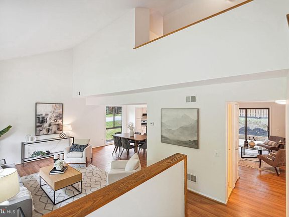 STUNNING MID-CENTURY MODERN GEM IN SERENE NEW MARK COMMONS! Discover the perfect blend of historic charm and contemporary living in this rare, timeless mid-century modern home nestled in the serene community of New Mark Commons in the heart of Rockville. This planned community, designed by builder Edmund Bennett and architects Keyes, Lethbridge & Condon, offers beautifully preserved natural surroundings, and a unique living experience with an array of amenities. The neighborhood's historical significance was recognized with its listing in the National Register of Historic Places in 2017. Set on a premium cul-de-sac lot, this sparkling updated 2 level, 4BR 2.5BA home highlights an exciting open floor plan with soaring ceilings, abundant natural light, and an airy living/dining area with vaulted ceilings . This gem also features a large versatile space, converted from the garage, ideal for a main level suite, home office, studio, or gym. Conveniently adjacent to this space is the laundry and storage room. An inviting family room with a fireplace and sliders to the patio, and a spacious bright kitchen with resurfaced white cabinets, view of greenery through the sink windows, and shining new appliances round out the first floor. On the second level sits the primary suite with a dual-door en-suite bathroom connecting to a second bedroom, and a hall bath shared by the 3rd and 4th bedrooms. Stylishly renovated bathrooms and powder room, brand new stainless steel appliances, new HVAC, NEW hot water heater, NEW ROOF! Fresh paint throughout, professional landscaping, and lovely curb appeal make this home truly stand out! Take advantage of the extensive community amenities, including a beautiful lake, swimming pool, 2 tennis courts, a basketball court, clubhouse, bike paths, and tot lots. All this within just 0.5 miles from Rockville Town Center and the Metro station, or one block from the Ride On bus to Rockville Metro, and easy access to I-270, Rockville Pike, and Pike & Rose.