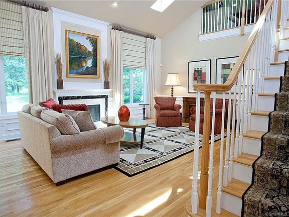 Lovely light-filled end unit ranch style home in desirable Hunters Run offers a fabulous lifestyle The main level features a bright open floor plan with soaring ceilings, oversized windows, wood floors and both formal and casual living spaces. The Living Room with a gas fireplace has woodland views and is open to the Dining Room appointed with a trey ceiling. The spacious white Kitchen offers tremendous cabinet space, Corian counters, newer stainless steel appliances and wall oven/microwave, dining area and opens to a cozy den with access to the screened porch and private deck. The spacious first floor Master Bedroom suite boasts double closets and a fantastic full bath with double vanity, spa like tub and tiled stall shower. The second en suite bedroom is also on the main level.The loft is overlooks the Living Room and features a wall of built-ins. The partially finished lower level provides a recreation room, full bath and tremendous storage in the unfinished portion. This home backs to the Avon Land Trust property. Enjoy all that Hunters Run has to offer - an amenity filled Club House with fitness room, indoor pool, hot tub, sauna, plus two outdoor lighted tennis courts. HOA fee includes basic cable, district tax paid quarterly. Welcome home to the good life