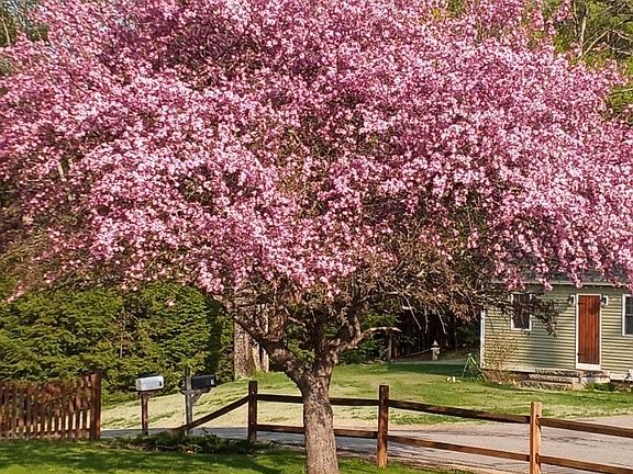 The definition of HOME SWEET HOME! A beautifully landscaped corner lot with blossoming mature trees, decorative fence, and inviting outdoor living space from the entertaining patio to the relaxing firepit and designated garden area. Inside you will find a light and bright open floor plan, featuring a beautiful fully applianced kitchen with glass cook top/built in oven, white cabinets, center island with a handcrafted custom wine rack, formal dining room, two large bedrooms with overhead lights/ceiling fans and custom sliding barn door accent. Remodeled bathroom with modern farmhouse finishes. Family room in LL with cozy woodstove as well as another bedroom or office and laundry room. New efficient Boiler with two zones. Vinyl replacement windows and maintenance free composite/vinyl entrance with storm door to allow for an abundance of natural light. Two large sheds for outdoor storage and large paved driveway. Minutes to 93.