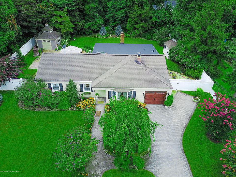 Eclipsed by mature landscape, an exceptional Middletown masterpiece has been revived to serve as the centerpiece. The finest of materials have been summoned to properly showcase this couple's retreat, idyllically located minutes to all modes of New York City access. 3 bedrooms (third bedroom in current use as home office, can be converted back) & 2 full bathrooms with marble & limestone finishes grace the interior, atop travertine floors with custom wood accents. Natural light flushes open living spaces with multiple fireplaces through Anderson window-lined walls, with a chef's dream kitchen at the hub with Wolf & Miele appliances. Backyard oasis grants ample leveled lawn space, patio with expert masonry, fire pit & 2-story shed. A short drive to downtown Red Bank & famed ocean beaches.