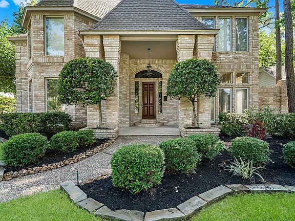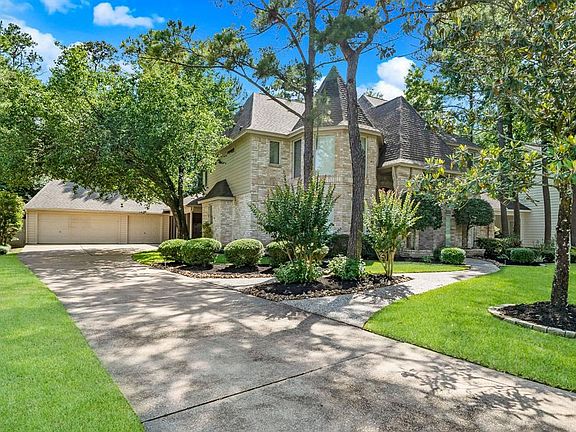 This superbly maintained Lyons-built custom home is located within one of the most central, desirable locations in The Woodlands. Shadow Lake Forest has long been the community of choice for the most discriminating buyers and now you have the opportunity to become part of it. The property itself backs to a green-belt providing absolute privacy for enjoying the pool, the gas log fire pit, and screened-in patio. Three car garage. This home has been recently updated with a neutral palette to satisfy the tastes of today's buyer. Upon entry, an over-sized living room provides views of the pool and trees beyond. Hand carved wood plank floors. An office/flex-room can be accessed from either the main entry or the first floor master. Formal dining plus a large eat-in kitchen. Double-paned windows and two new HVAC systems are highly efficient. Space for long term visitors? There are three guest bedrooms upstairs (one could be a second master with its ensuite bathroom) plus a spacious game-room.